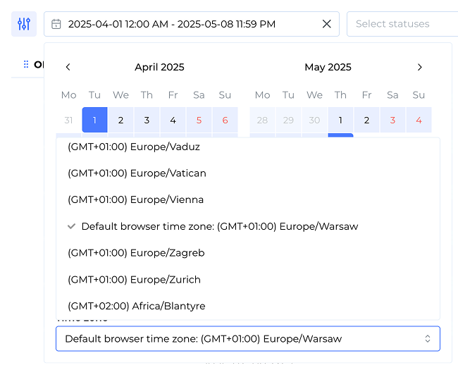 - Unified Time Zone & Date Range Selector - We’ve streamlined the experience in the Orders, Metrics, Sessions and Reports sections by introducing a combined time zone and date range selector. This update makes it easier to explore and present data across different time zones, while also improving usability and saving screen space.