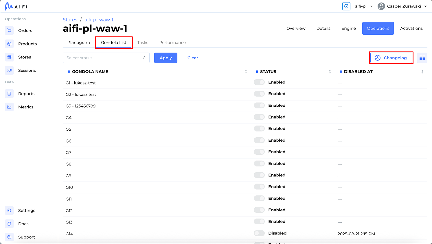 Enhanced Gondola Enable/Disable- You can now access the complete list of your gondolas, review their details, and enable or disable them directly from the Console.