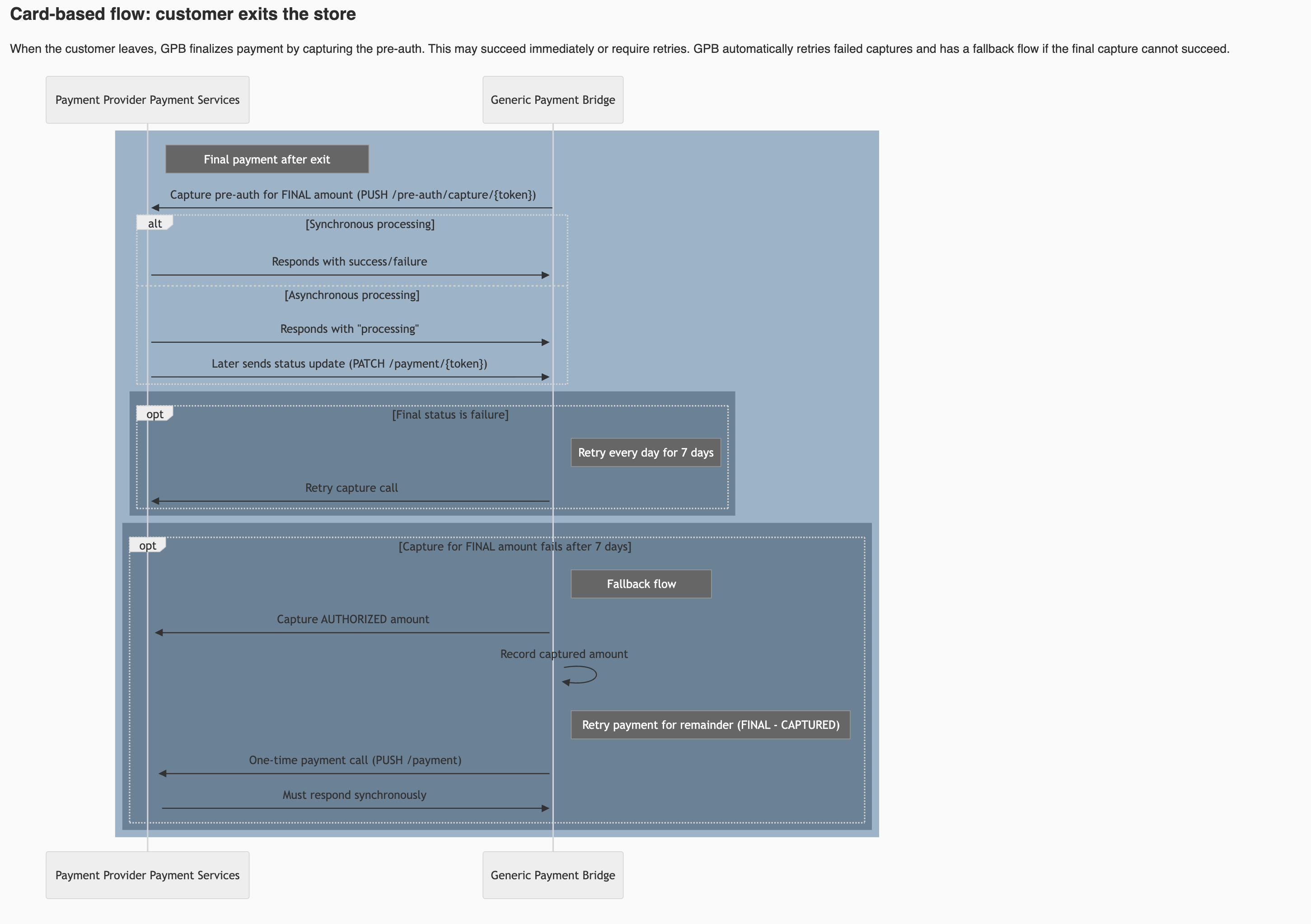- HTTPS endpoints: Your payment system exposes HTTPS endpoints accessible from the public internet to receive push notifications and capture requests.