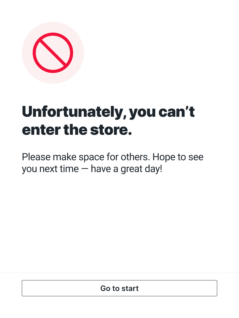 - Configure one of the buttons to block store entry and reset the flow if selected