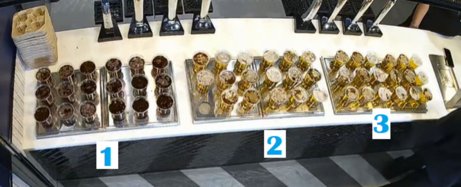 When placing hot and cold drinks on a counter, make it clear where one product ends and another starts – especially when they have similar color (beers) or packaging (hot tea / coffee / hot food)